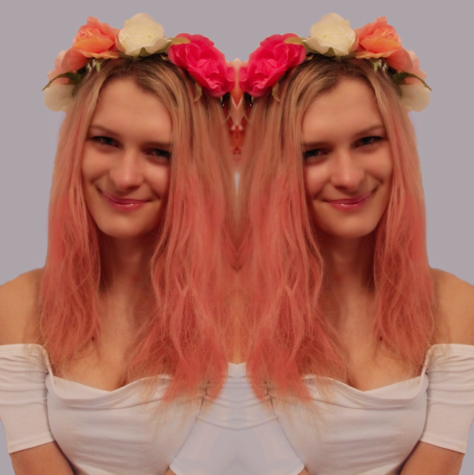 I think these photographs work because the pink from the hair and headpiece adds a pop of colour. The colour scheme is appropriate for my artist and the pop genre as it is feminine and bright. Furthermore the flowers reflect her name; Lily and Palmer both denote plants. I also think these close up shots work well as the focus is completely on Palmer. I also chose the images with happy facial expressions as I think these give the vibe I was after; these shots are very light-hearted.